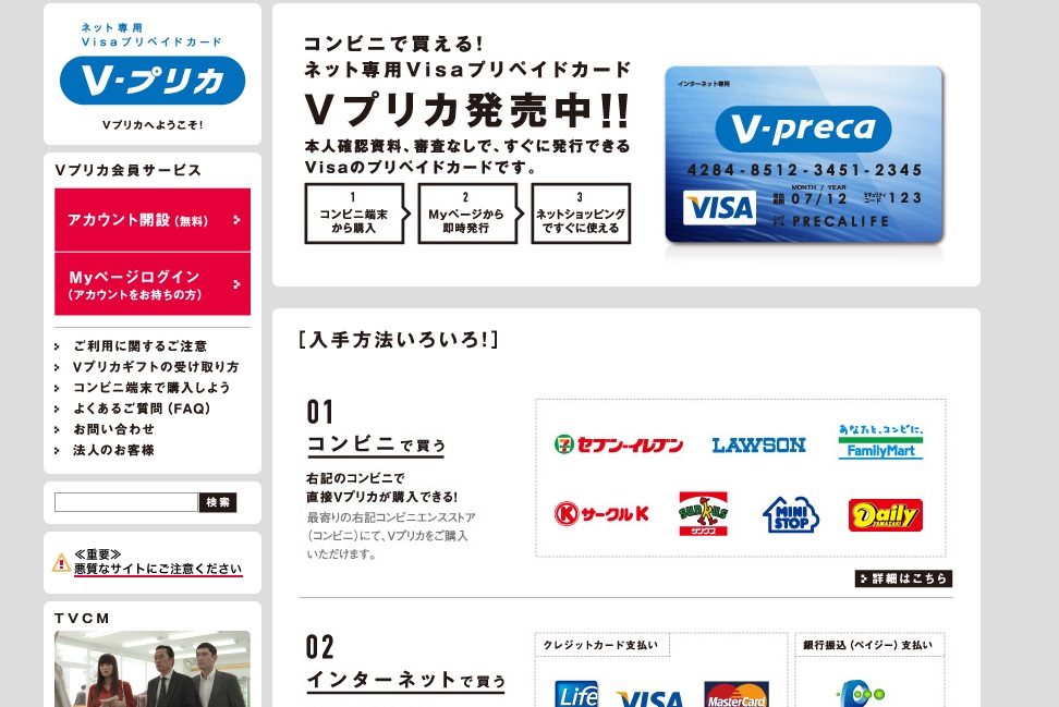 Vプリカで快適!だれでも使えるクレジットカード 未成年 2013年08月01日 Vプリカをご存知でしょうか?!?!?!?!?!?!?!?!?! このVプリカは、誰でも審査不要でインターネット上のみで作れるクレジットカードなのです。 銀行から落とすのではなく、事前にコンビニなどで支払い、そのワクの中で使えるというものです。 だから、 →(年齢登録あるけど)ネット上完結なので、簡単にカード番号が持てる →Playストアやクレカが求められる課金などの場面で活躍。 →チャージ額しか使えないのでなんかカード情報が漏れちゃっても普通のクレカより安心! というまあなんともありがたいカードなんです。 Vプリカ→http://vpc.lifecard.co.jp/index.html 実際に使ってみた・・・ まずアカウント作成。 年齢は(一応)18歳以上で無いと登録できないが。。 。 ネットで完結。本人認証ナシ。つまりそういうことです。 まあ私はまず普通に作った。 次に近所のファミマに向かう。緑色のfamiポートでプリペイドを選びVプリカを選択。紙が出てきたら、店員に渡して手数料200円と券種の額面(3000~)との合計を支払う。 暫くするとパスワードの書かれた紙が渡された。これをVプリカのmyアカウントで登録し、使用可能となる。 こんな感じ。さっそく楽天でポイントでの不足額に当ててみた。 順調順調! ちなみにコンビニ店員さんは何を買った買ったなんて気にしてない模様・・・ つまり未成年がコンビニでvプリカを購入しても・・・ まあこれから使える場面も多いと思うんでまずはじめに書きました。